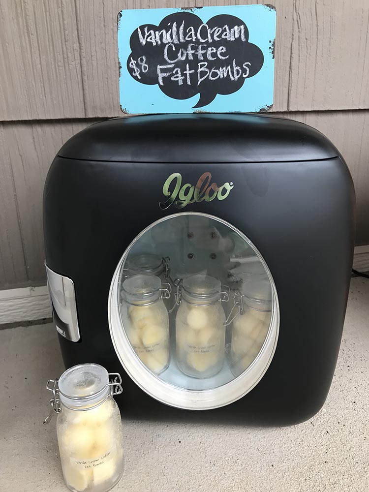 Stop by the Front Porch Pantry and grab a jar of Vanilla Cream Coffee Fat Bombs. A yummy treat for a coffee lover!